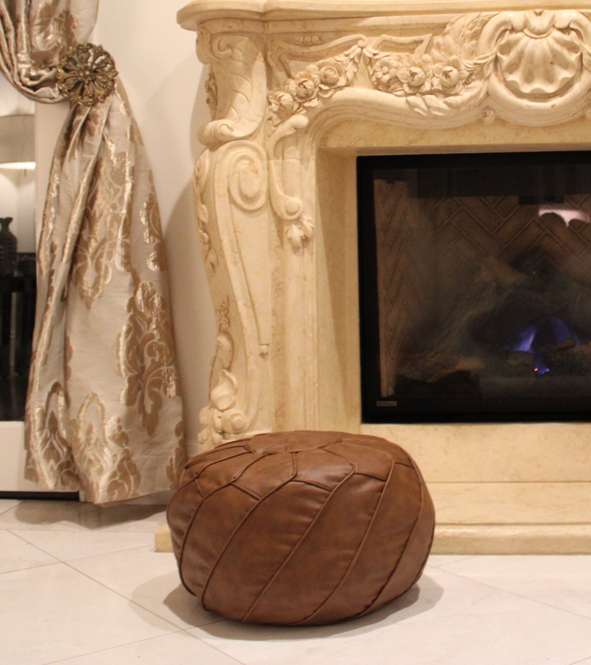 Amina Modern Natural Leather Moroccan Pouf - Filled