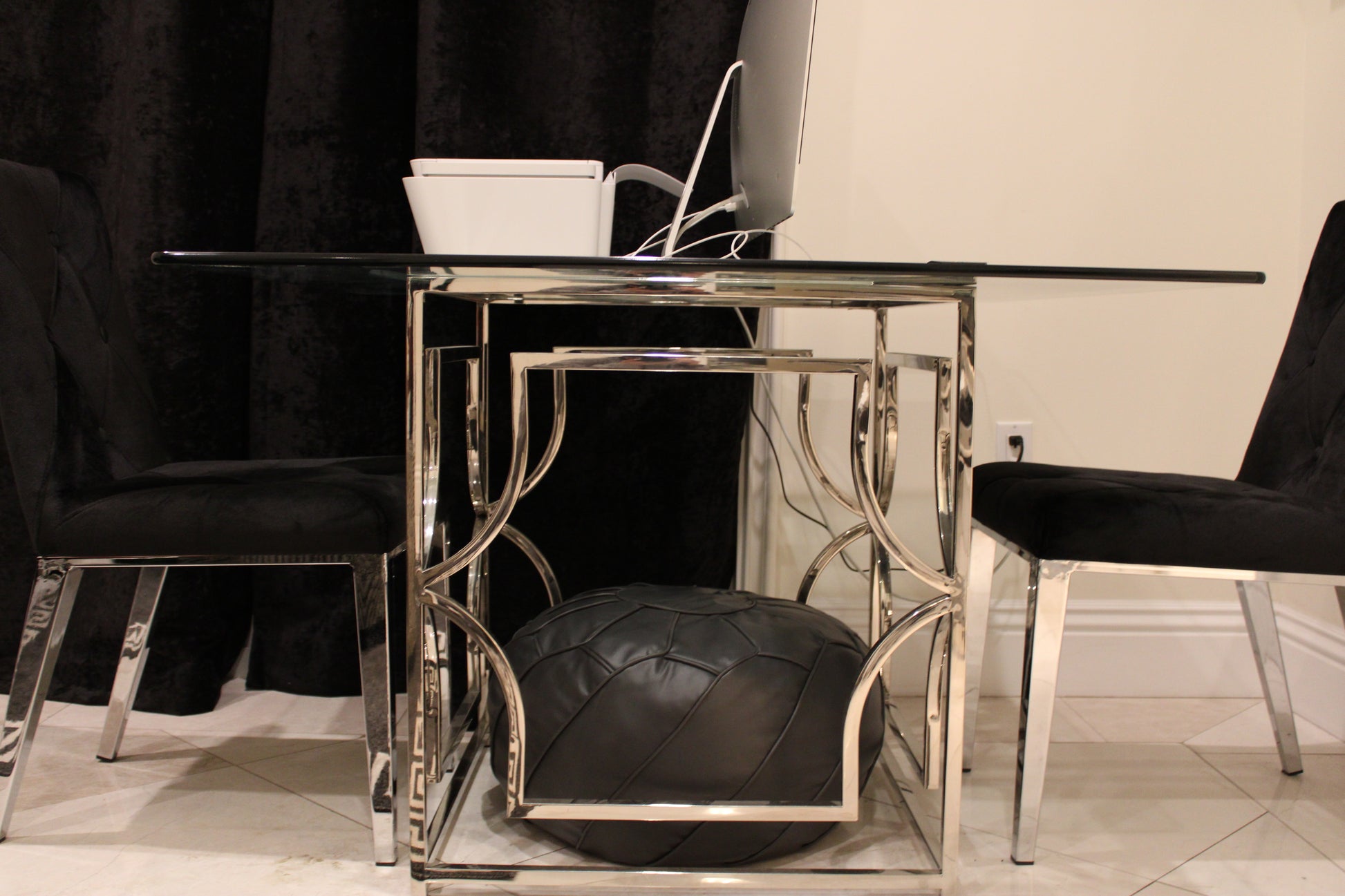 Nadia Modern Matte Black Moroccan Pouf - Filled
