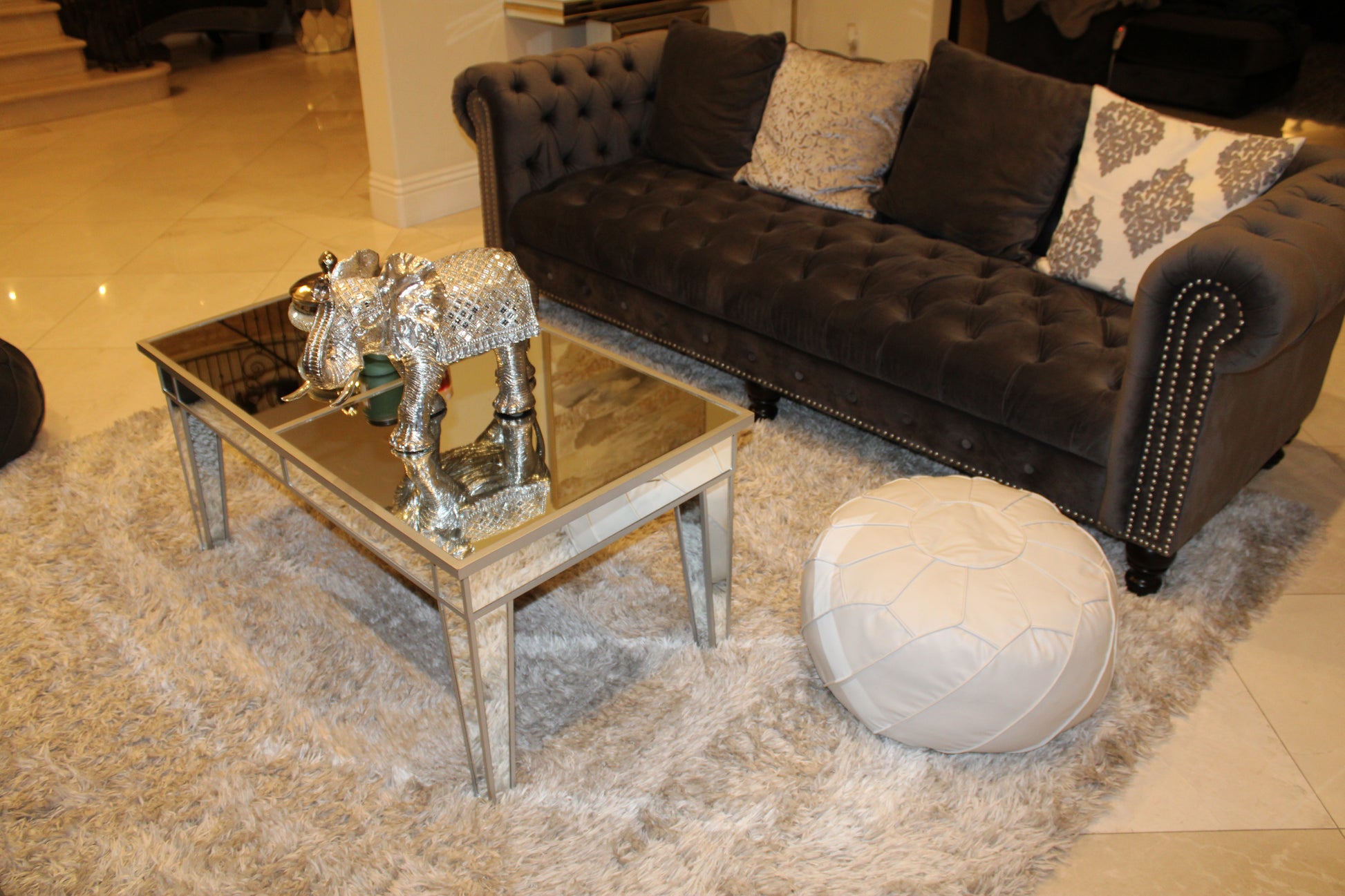 Safa Modern White Moroccan Pouf - Filled